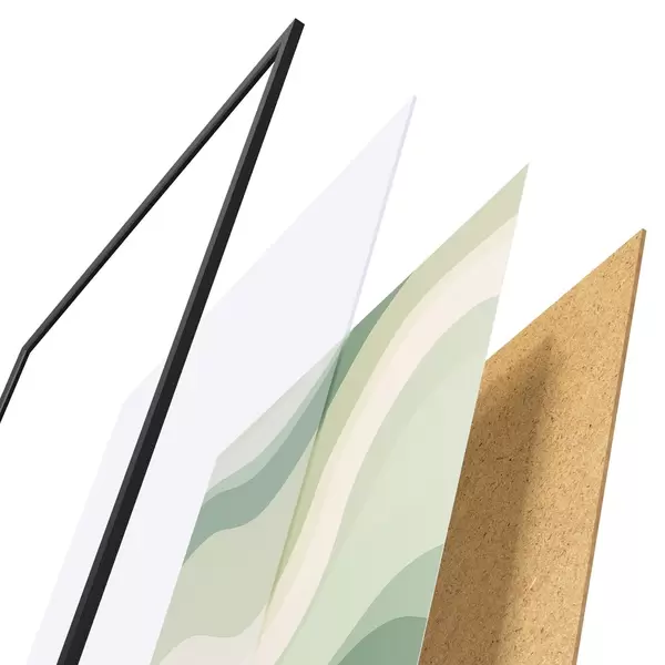 Das Poster besteht aus einem Rahmen, Plexiglas, einem gedruckten Bild und einer Rückwand aus Spanplatten. Dank der Halterungen auf der Rückseite kann das Poster sofort an die Wand gehängt werden.