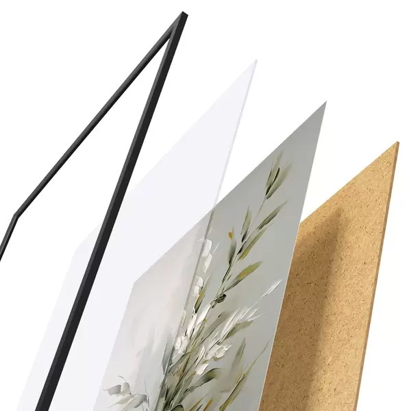 Das Poster besteht aus einem Rahmen, Plexiglas, einem gedruckten Bild und einer Rückwand aus Spanplatten. Dank der Halterungen auf der Rückseite kann das Poster sofort an die Wand gehängt werden.