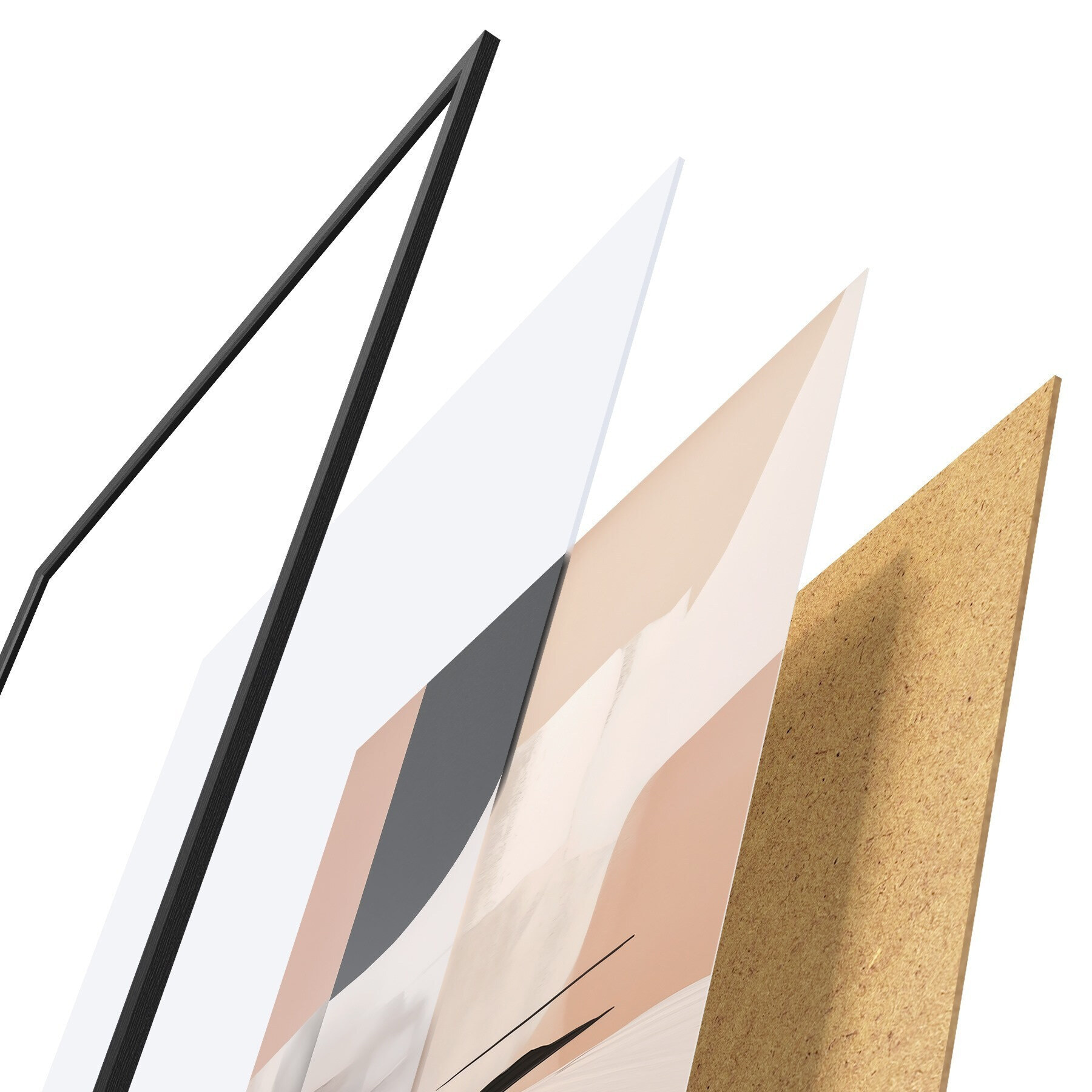 Das Poster besteht aus einem Rahmen, Plexiglas, einem gedruckten Bild und einer Rückwand aus Spanplatten. Dank der Halterungen auf der Rückseite kann das Poster sofort an die Wand gehängt werden.