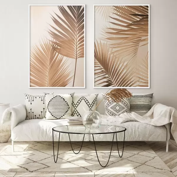 Poster Palmenblätter in Brauntönen, neutraler Hintergrund, minimalistischer Stil, natürliche Beleuchtung, tropisches Flair d00880