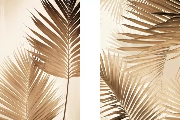 Poster Palmenblätter in Brauntönen, neutraler Hintergrund, minimalistischer Stil, natürliche Beleuchtung, tropisches Flair d00880