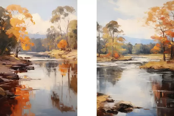 Um die Leinwand auf Keilrahmen zu spannen, ohne das Bild zu beschädigen, verwenden wir ein gespiegeltes Bild.