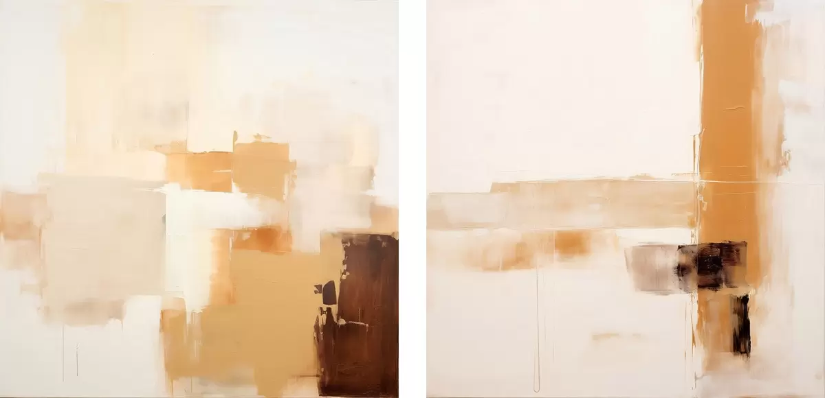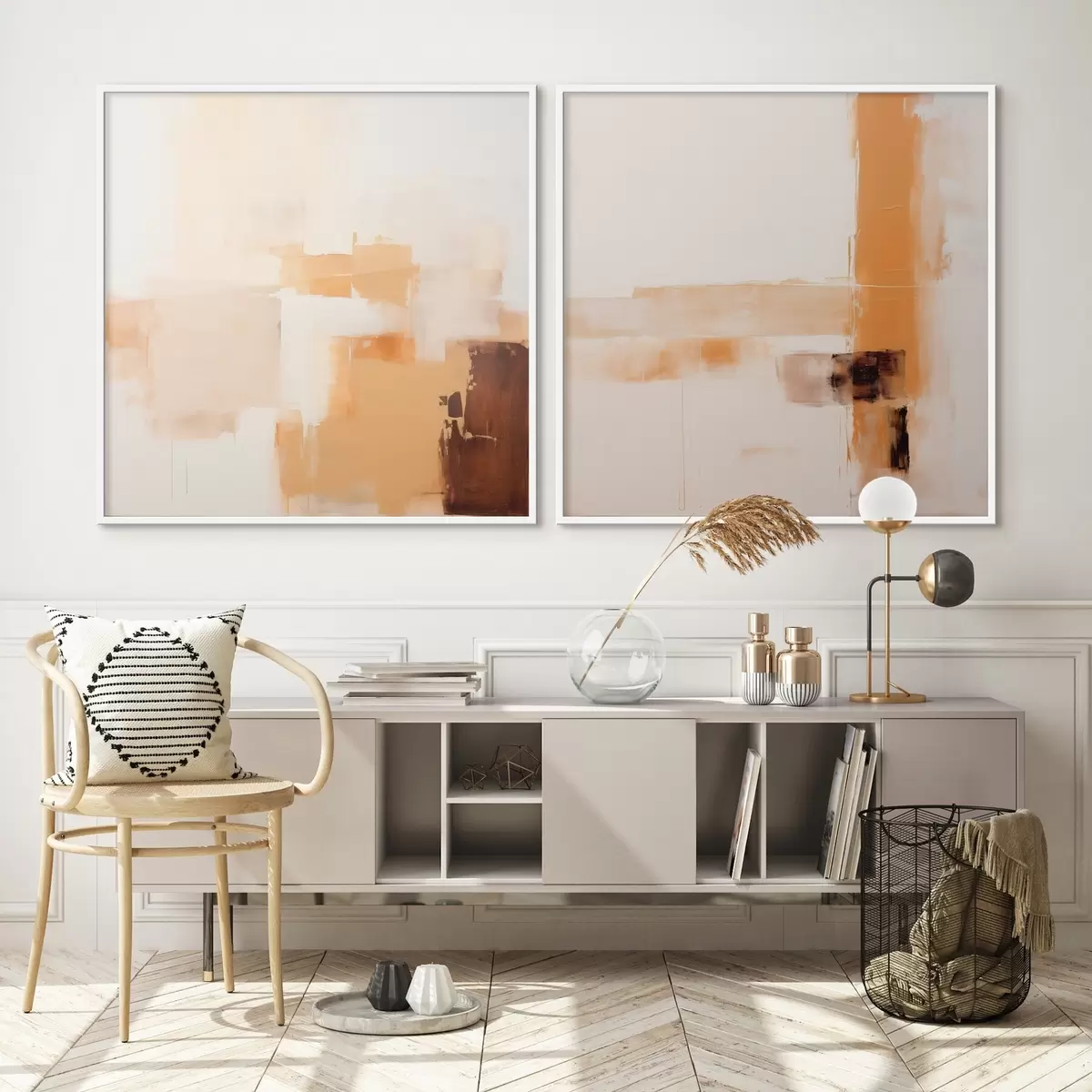 Poster Abstrakte zweiteilige Komposition in Beige und Braun Nr d00891