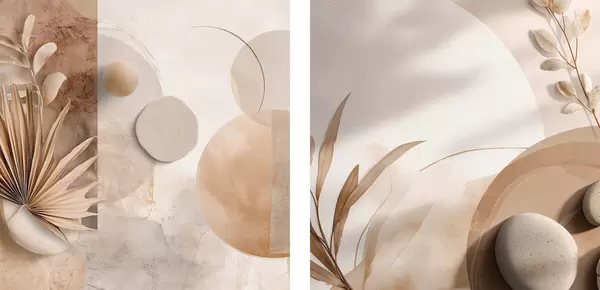 Poster Zwei Leinwände mit getrockneten Blättern und strukturierten Formen Nr d00893