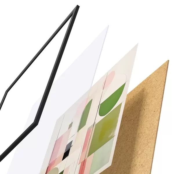 Das Poster besteht aus einem Rahmen, Plexiglas, einem gedruckten Bild und einer Rückwand aus Spanplatten. Dank der Halterungen auf der Rückseite kann das Poster sofort an die Wand gehängt werden.