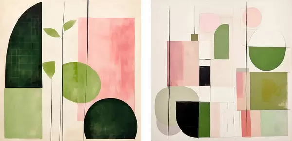 Poster Minimalistisches Diptychon mit stilisierten Blumen und geometrischen Formen Nr d00894