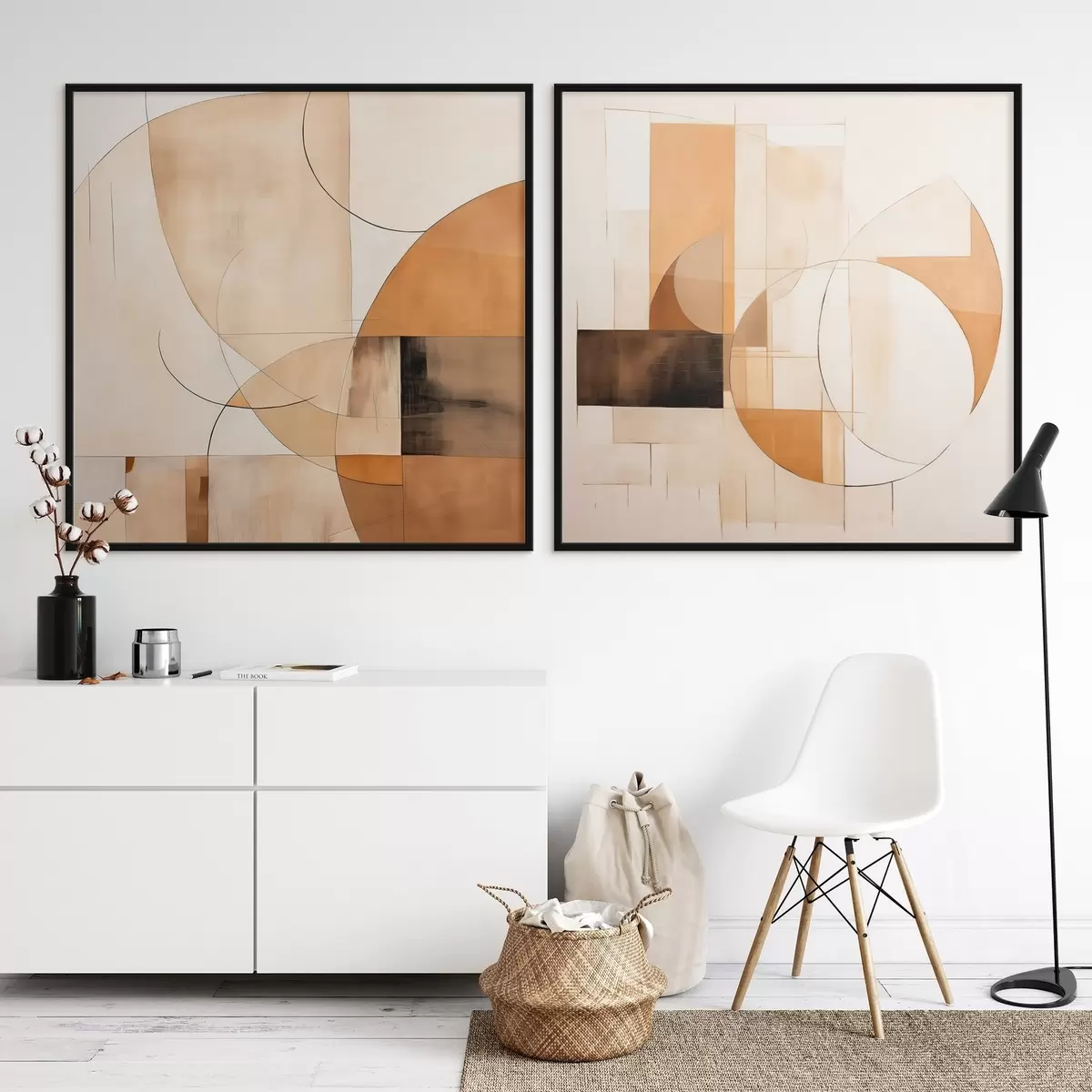 Poster Moderne Abstraktion mit Kreisen und Linien in Kaffee-mit-Milch-Farben Nr d00898
