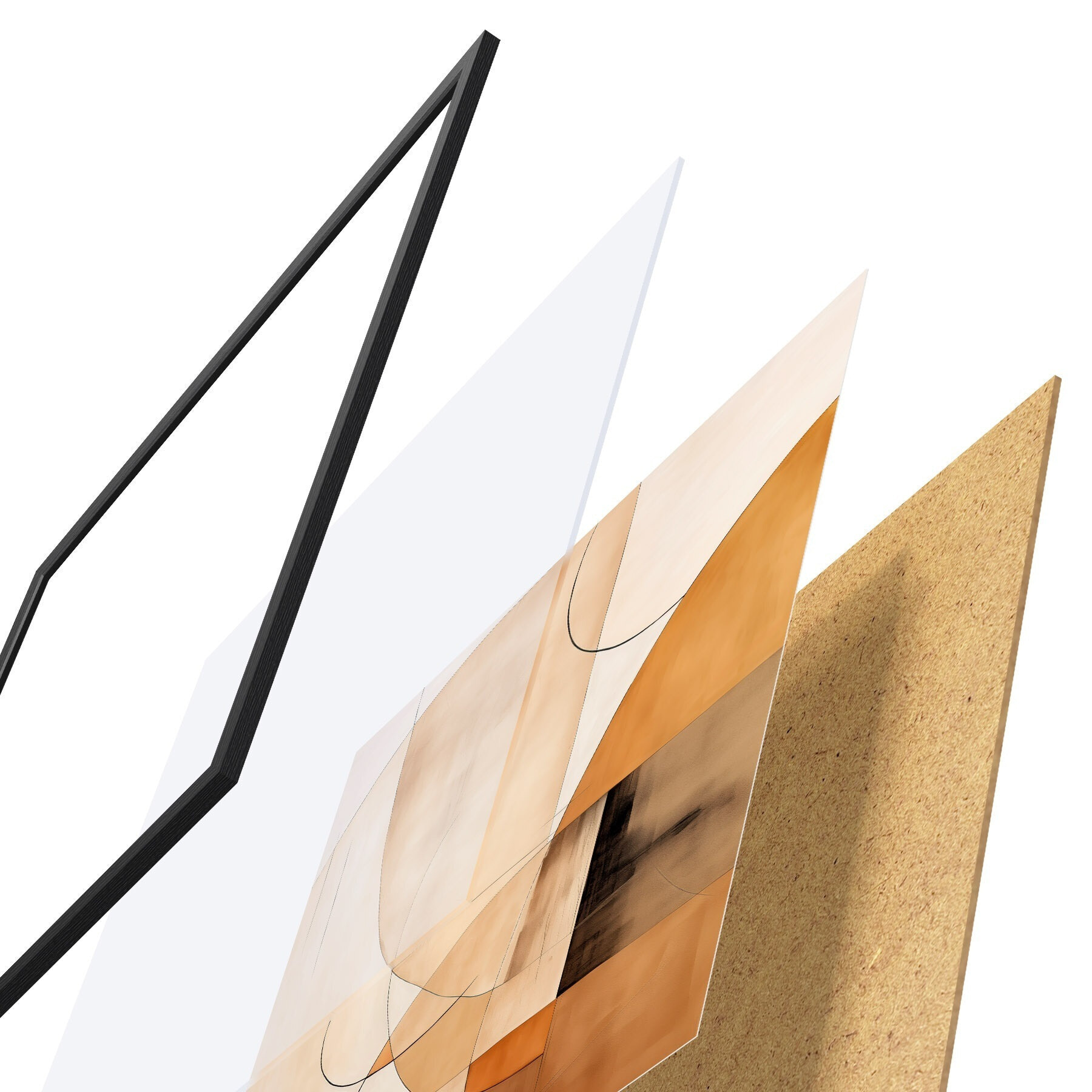 Das Poster besteht aus einem Rahmen, Plexiglas, einem gedruckten Bild und einer Rückwand aus Spanplatten. Dank der Halterungen auf der Rückseite kann das Poster sofort an die Wand gehängt werden.