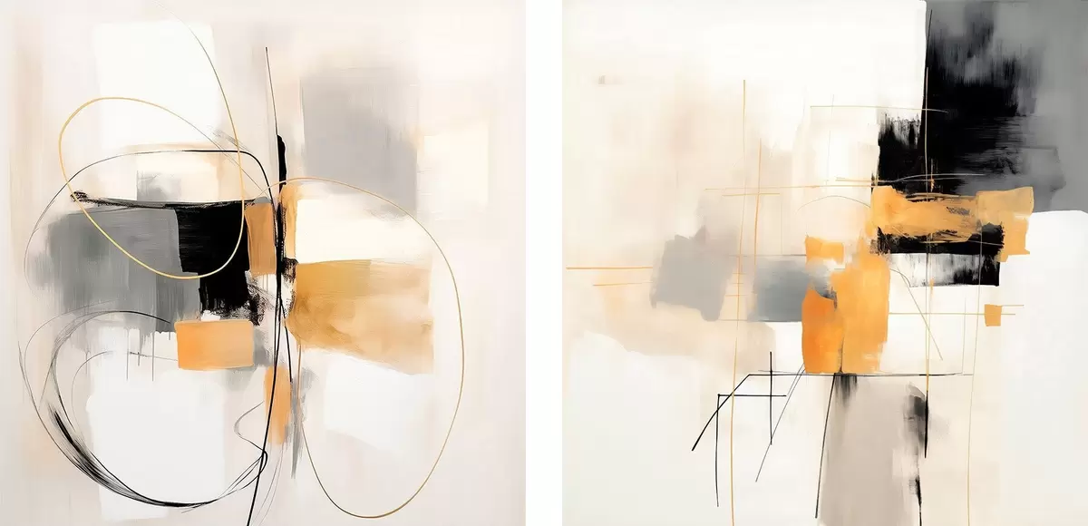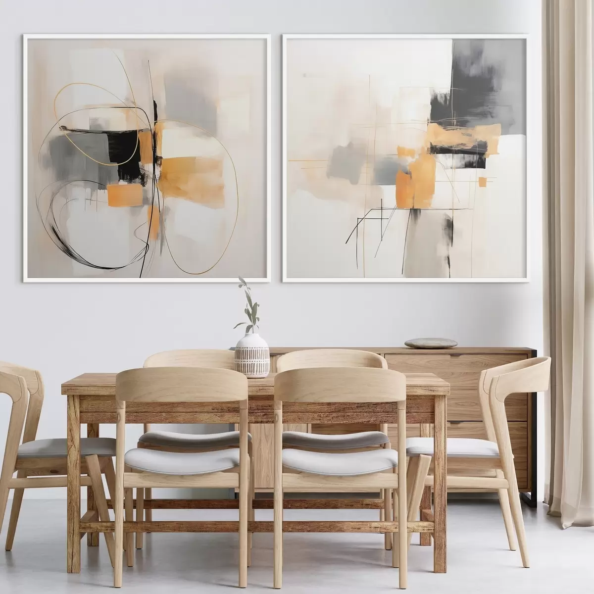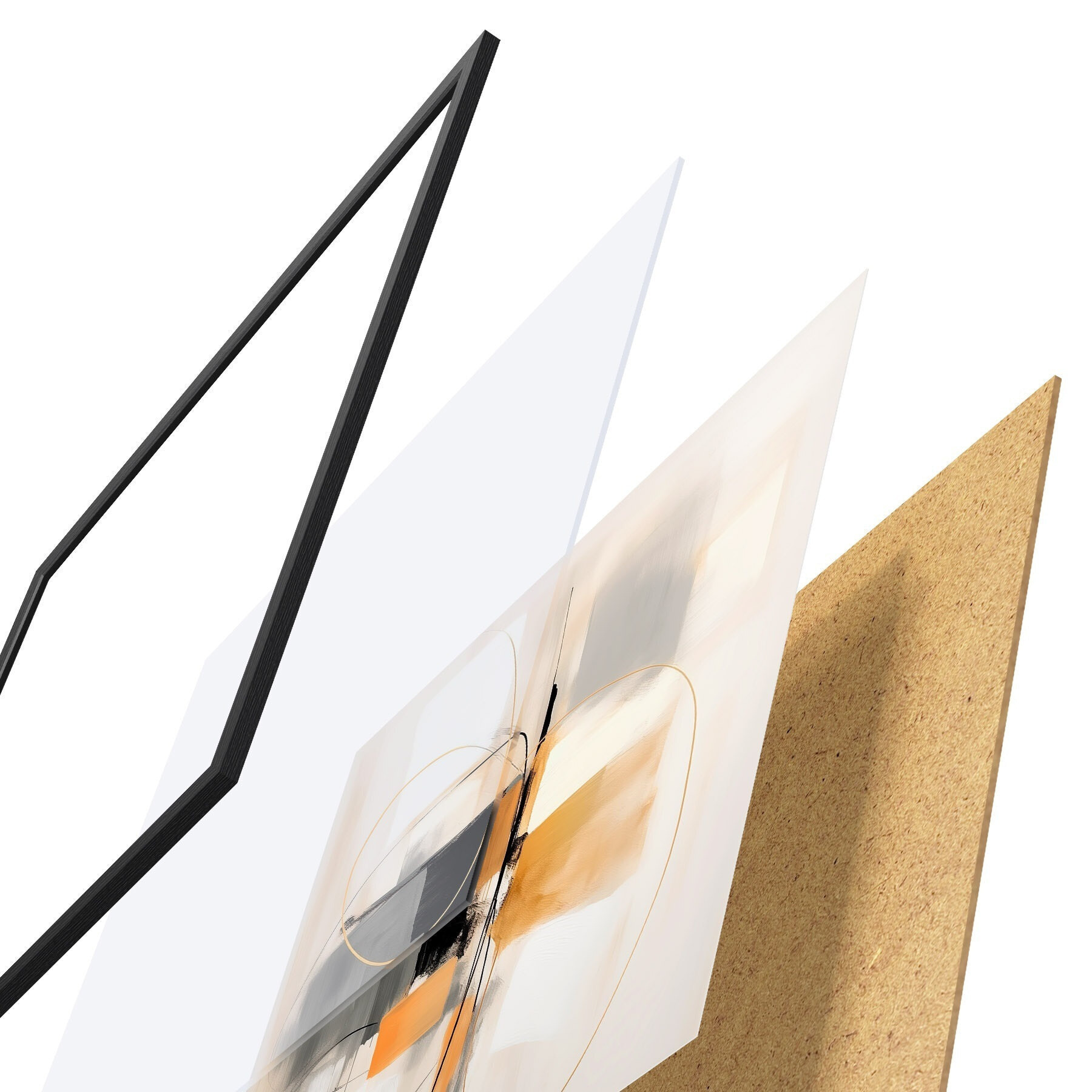 Poster Abstrakte Geometrie, Ocker, Grau und Schwarz Nr d00899