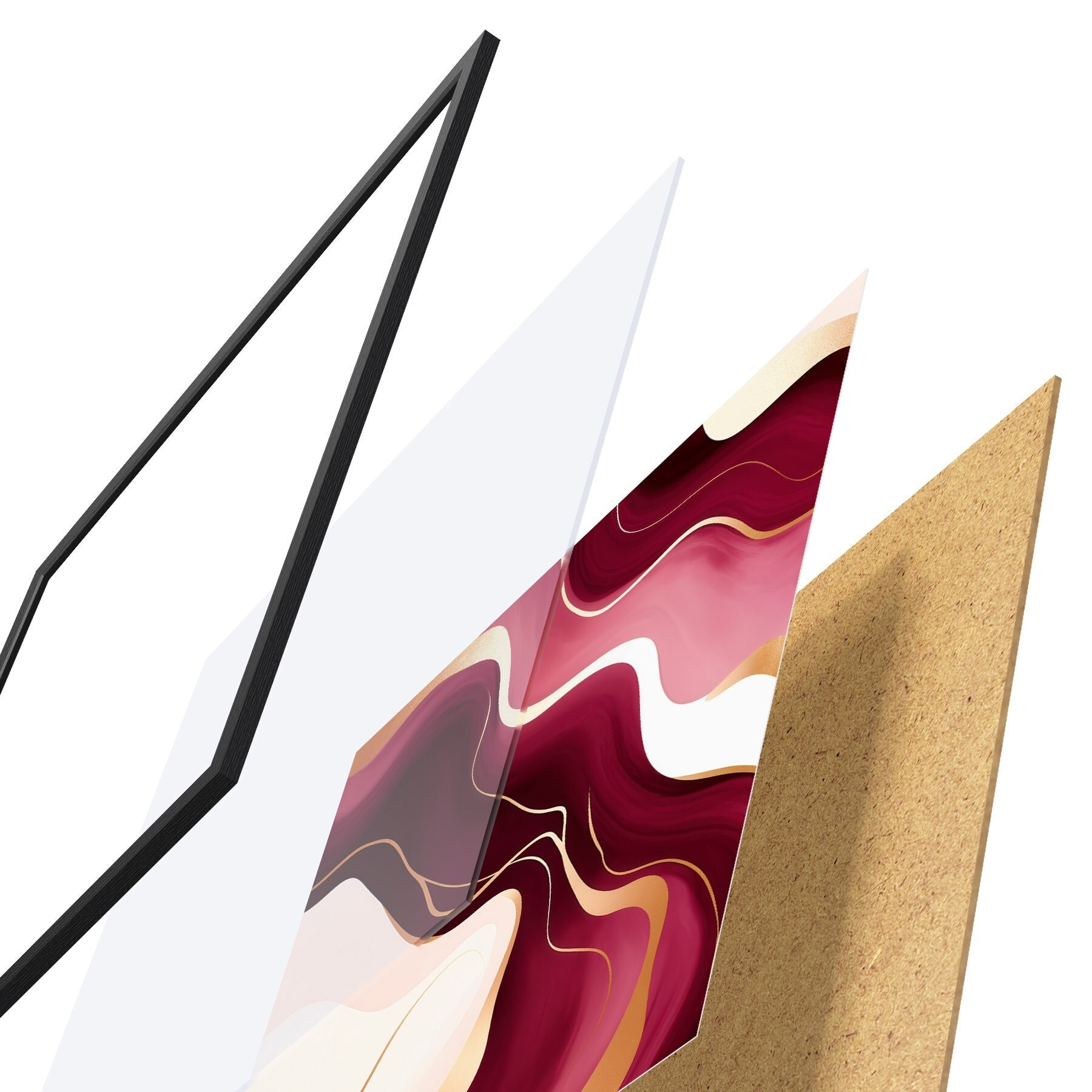 Das Poster besteht aus einem Rahmen, Plexiglas, einem gedruckten Bild und einer Rückwand aus Spanplatten. Dank der Halterungen auf der Rückseite kann das Poster sofort an die Wand gehängt werden.