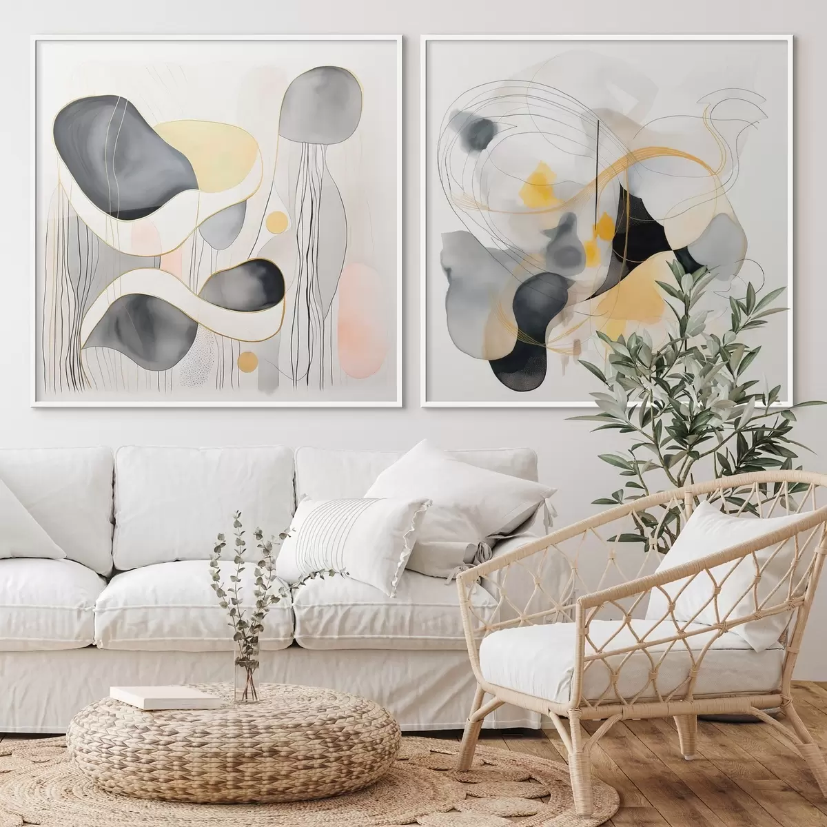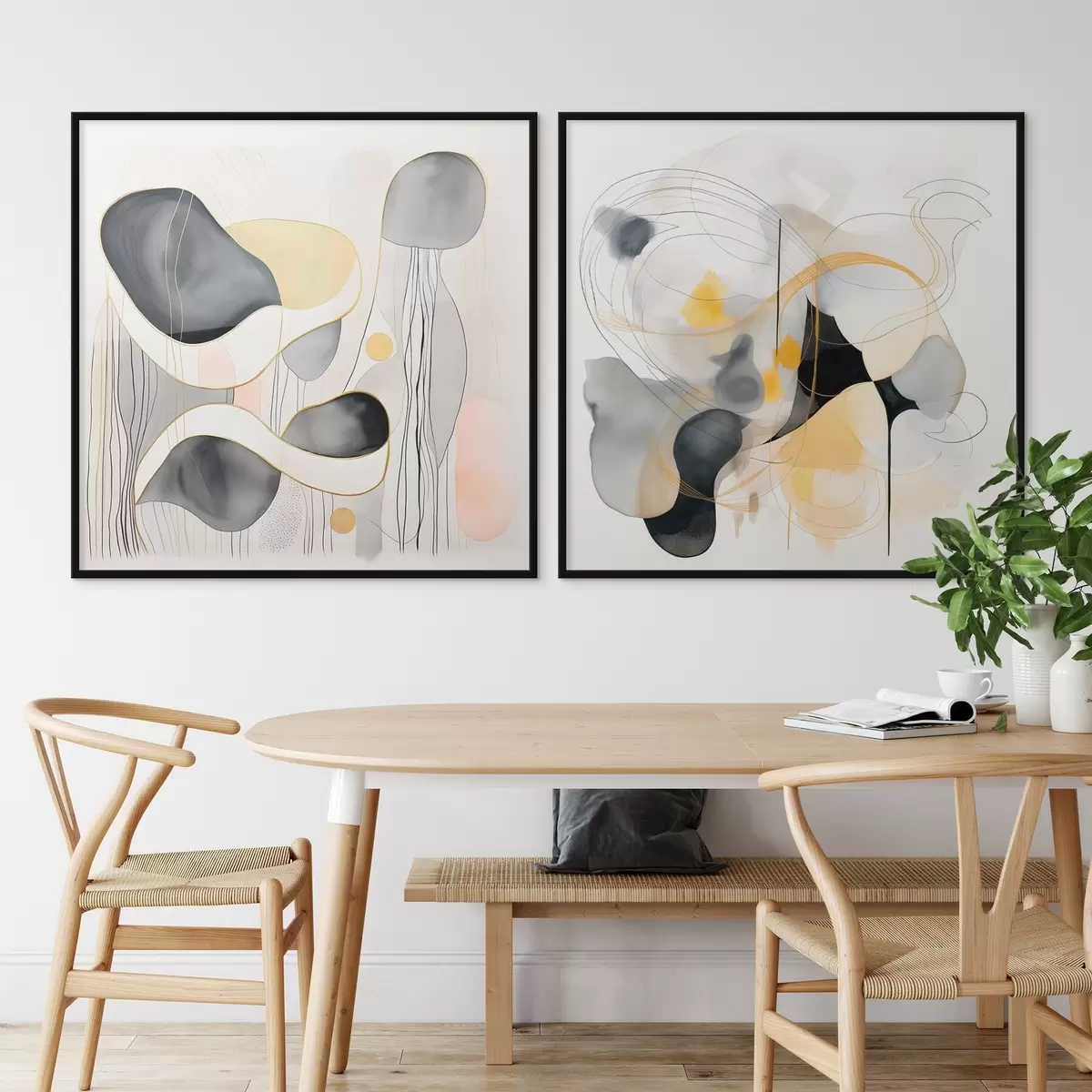 Poster Monochrom und gelbe Akzente im abstrakten Stil Nr d00905