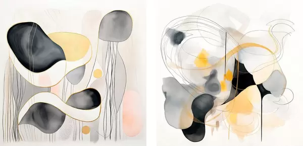Poster Monochrom und gelbe Akzente im abstrakten Stil Nr d00905