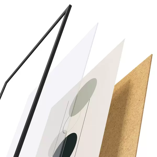 Das Poster besteht aus einem Rahmen, Plexiglas, einem gedruckten Bild und einer Rückwand aus Spanplatten. Dank der Halterungen auf der Rückseite kann das Poster sofort an die Wand gehängt werden.