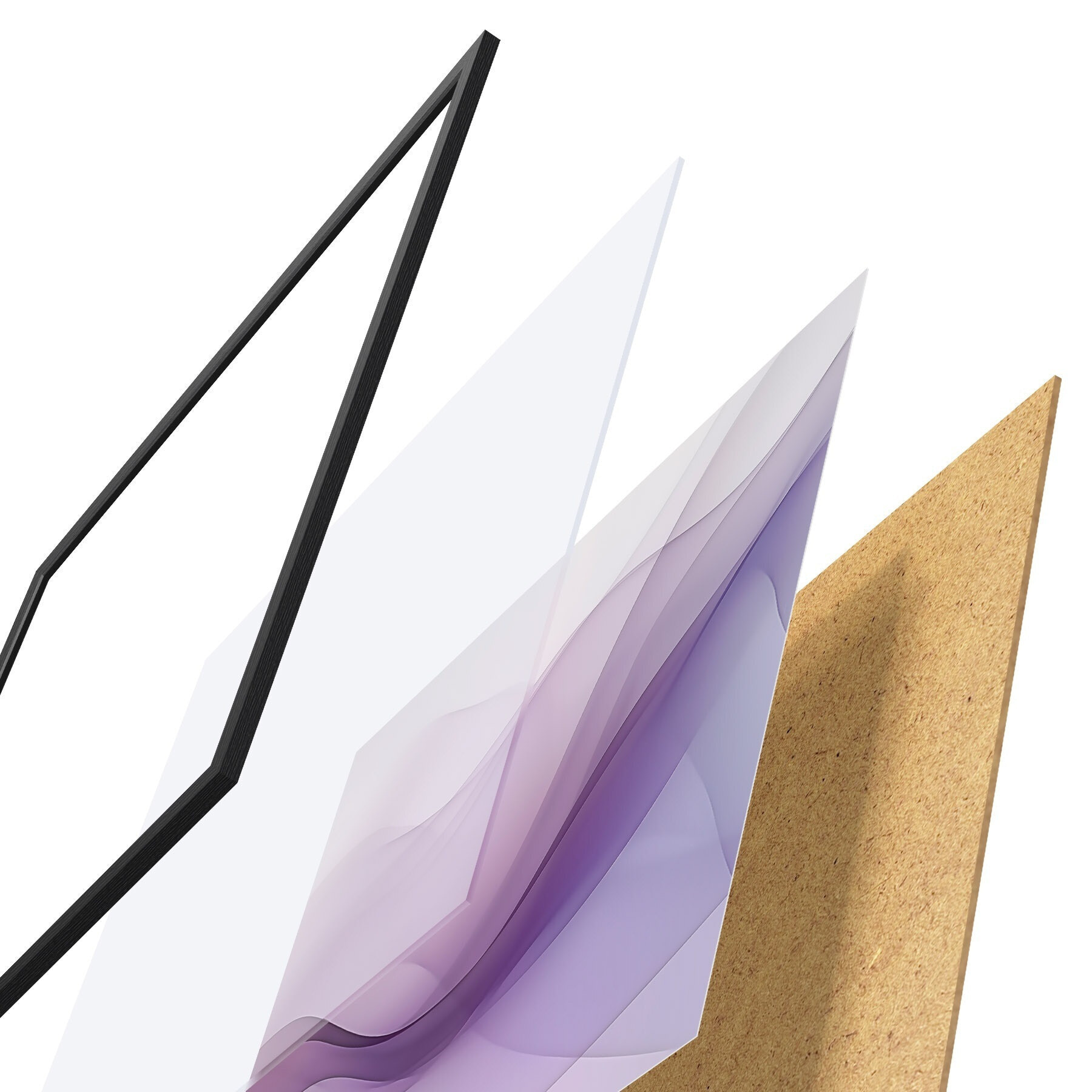 Das Poster besteht aus einem Rahmen, Plexiglas, einem gedruckten Bild und einer Rückwand aus Spanplatten. Dank der Halterungen auf der Rückseite kann das Poster sofort an die Wand gehängt werden.
