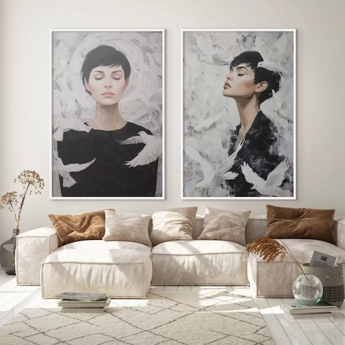 Drei Materialtypen stehen zur Verfügung: Economic Canvas - ein dichtes und haltbares Material für den Digitaldruck, identisch mit Malerleinwand, wasserfeste Oberfläche, realistische Wiedergabe von Details, mittelkörniges Material. Premium Canvas - die Textur ähnelt der einer Malerleinwand (verwobene kleine Fäden). Weiche, detaillierte Wiedergabe des Bildes auf einer matten Oberfläche. Eco-Premium - hochwertiges Gewebe aus 100% Baumwolle. Dank der natürlichen Baumwollfasern ist das Material langlebig und verschleißfest. Hervorragende Farbwiedergabe und Detailtreue.