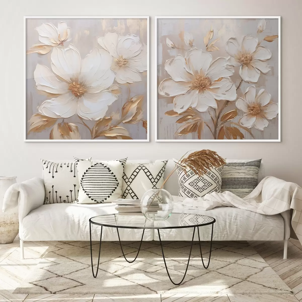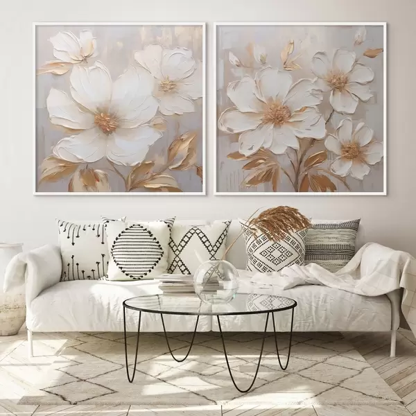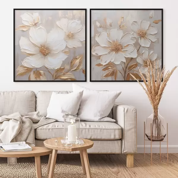 Poster Diptychon mit großen Blumen in hellen, warmen Farben Nr d00927