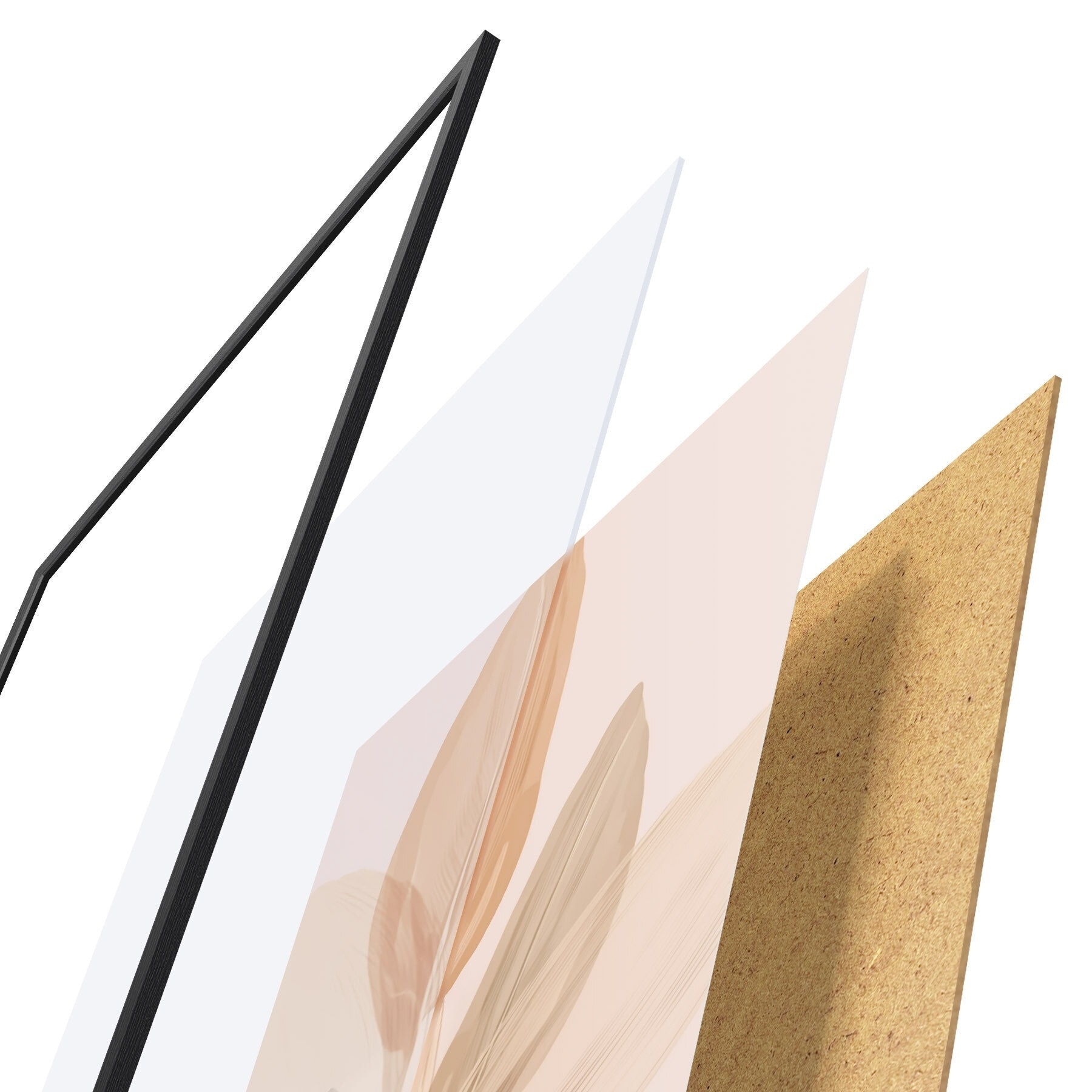 Das Poster besteht aus einem Rahmen, Plexiglas, einem gedruckten Bild und einer Rückwand aus Spanplatten. Dank der Halterungen auf der Rückseite kann das Poster sofort an die Wand gehängt werden.