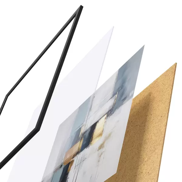 Das Poster besteht aus einem Rahmen, Plexiglas, einem gedruckten Bild und einer Rückwand aus Spanplatten. Dank der Halterungen auf der Rückseite kann das Poster sofort an die Wand gehängt werden.