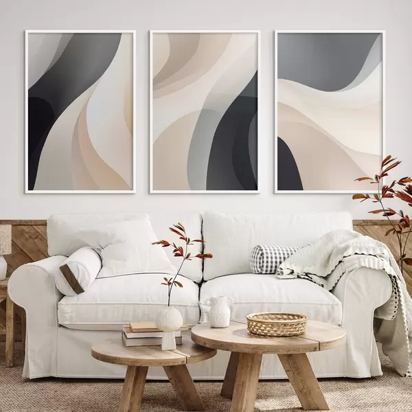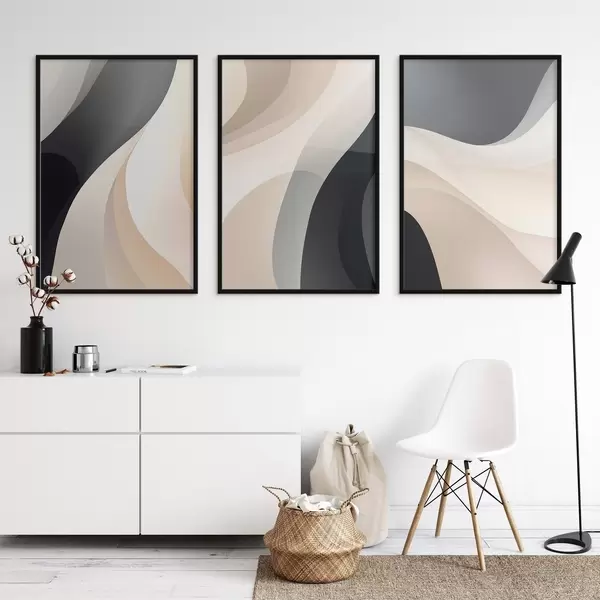 Poster Minimale fließende Kurven in Creme, Taupe und Schwarz Nr d00962