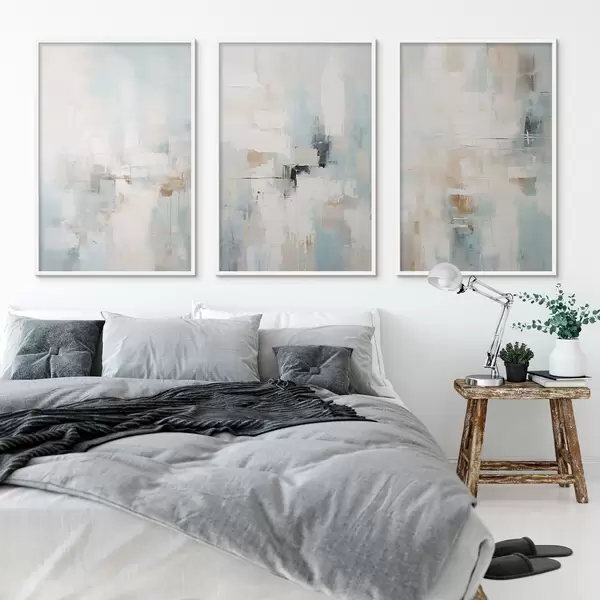 Poster Luftige, abstrakte Farbpalette: Weiß, Beige und Hellblau Nr d00966