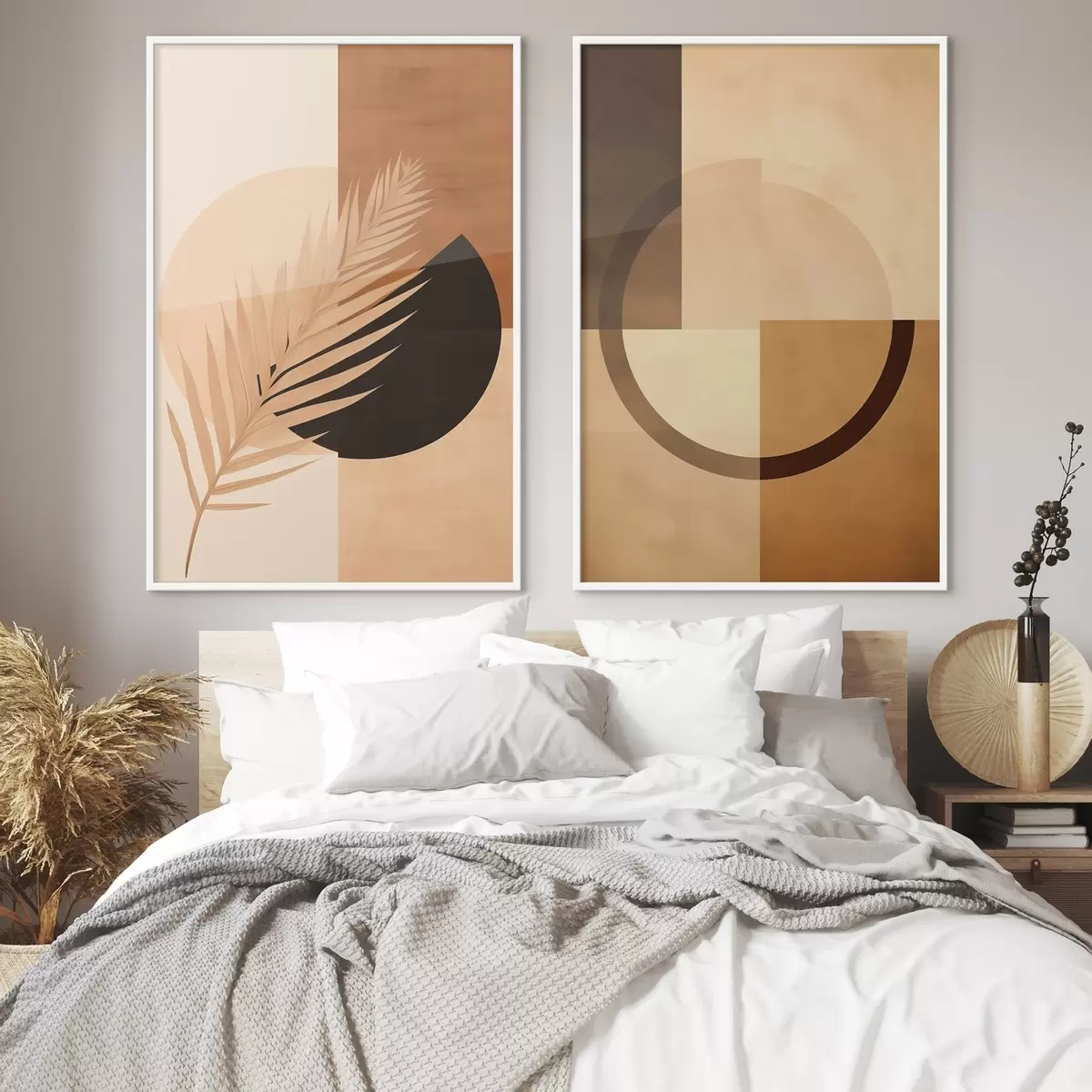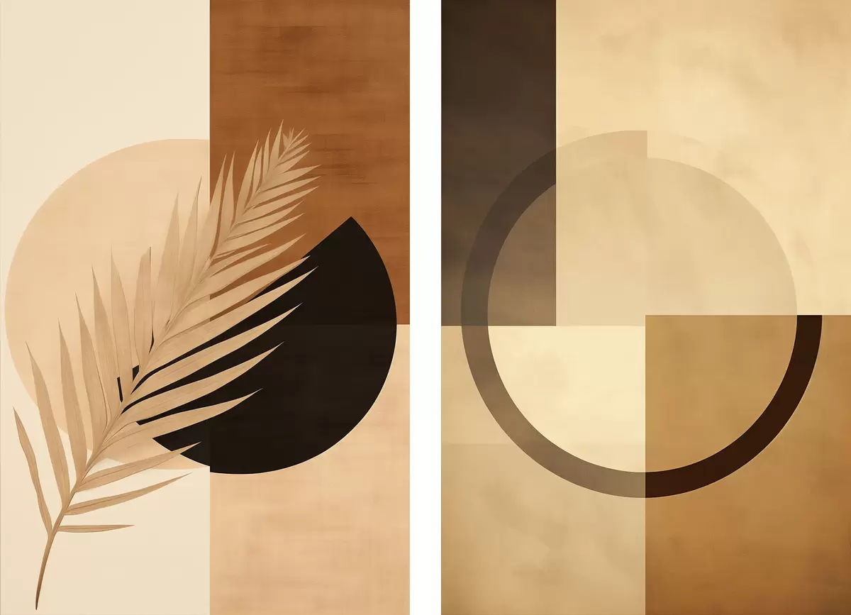 Poster Terrakotta und beige Geometrie mit Palmblattmotiv Nr d00968
