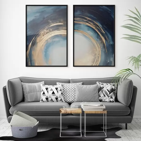 Poster Mitternachtsblaues Rundstrichmuster mit metallischen Bögen Nr d00969