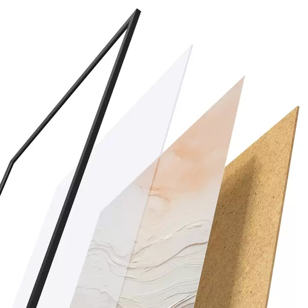 Das Poster besteht aus einem Rahmen, Plexiglas, einem gedruckten Bild und einer Rückwand aus Spanplatten. Dank der Halterungen auf der Rückseite kann das Poster sofort an die Wand gehängt werden.