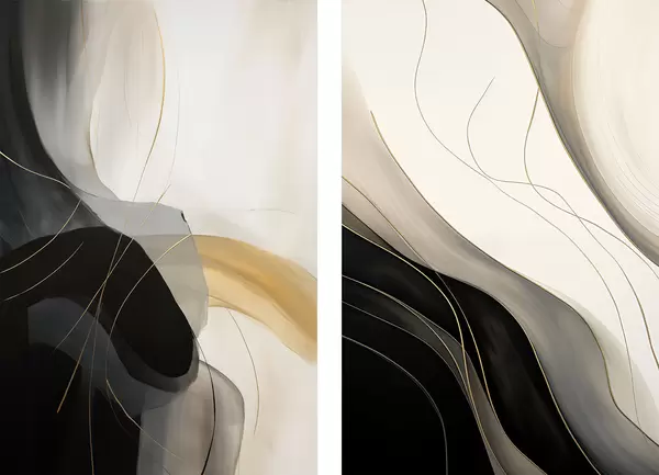 Poster Monochrome Kurven mit feinen Metallfäden d00972