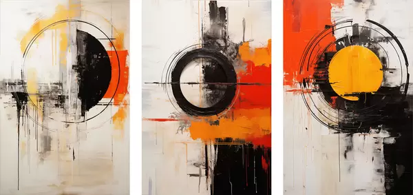 Poster Strukturierte Kreise und kräftige Striche in Schwarz, Ocker und Orange Nr d00974