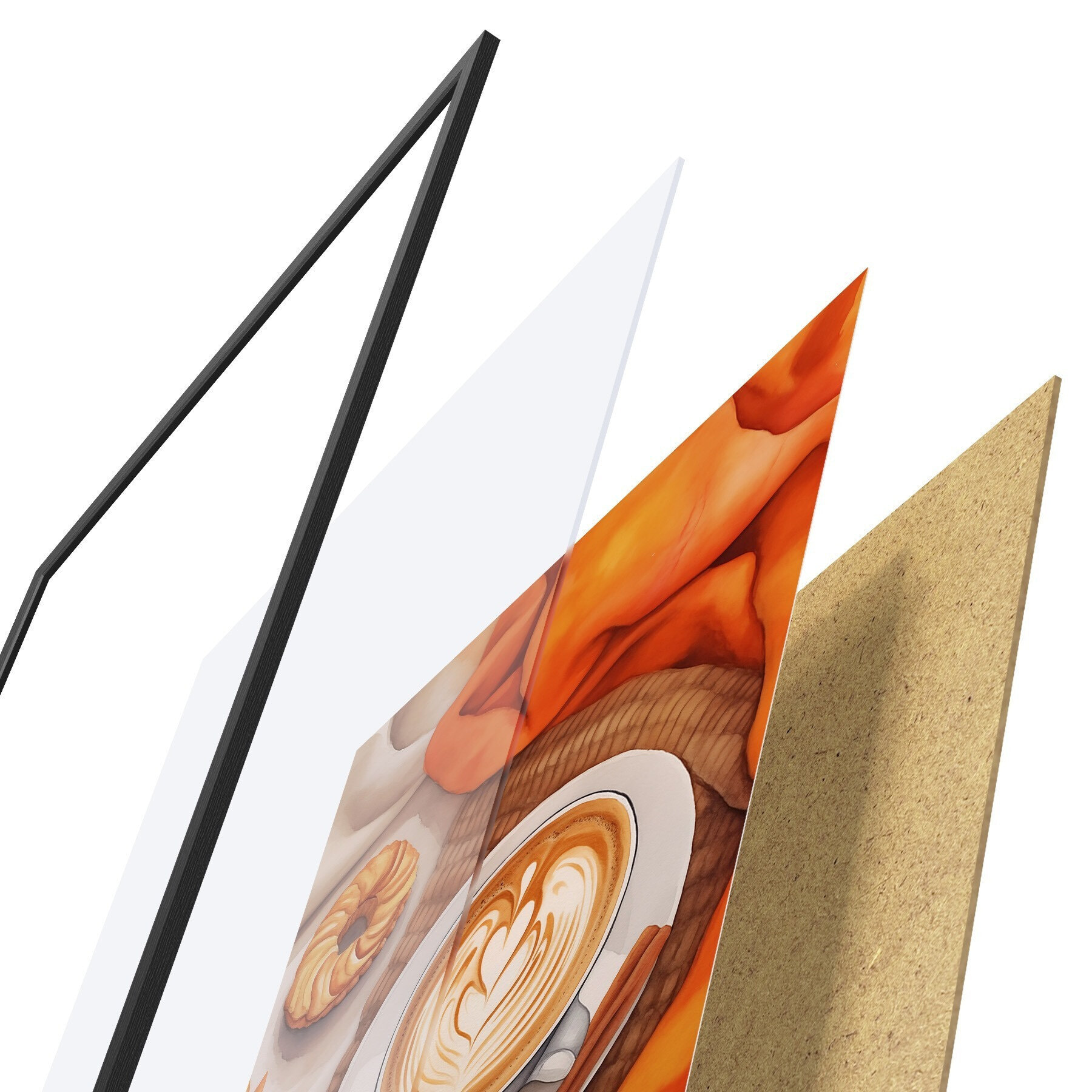Das Poster besteht aus einem Rahmen, Plexiglas, einem gedruckten Bild und einer Rückwand aus Spanplatten. Dank der Halterungen auf der Rückseite kann das Poster sofort an die Wand gehängt werden.