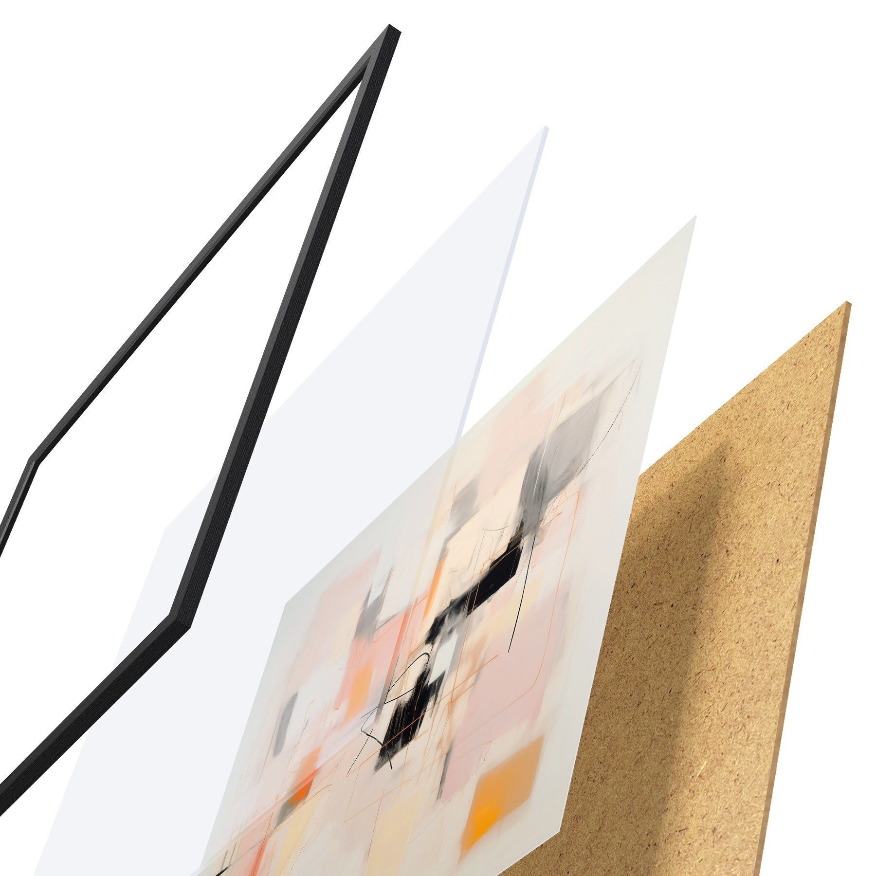 Das Poster besteht aus einem Rahmen, Plexiglas, einem gedruckten Bild und einer Rückwand aus Spanplatten. Dank der Halterungen auf der Rückseite kann das Poster sofort an die Wand gehängt werden.