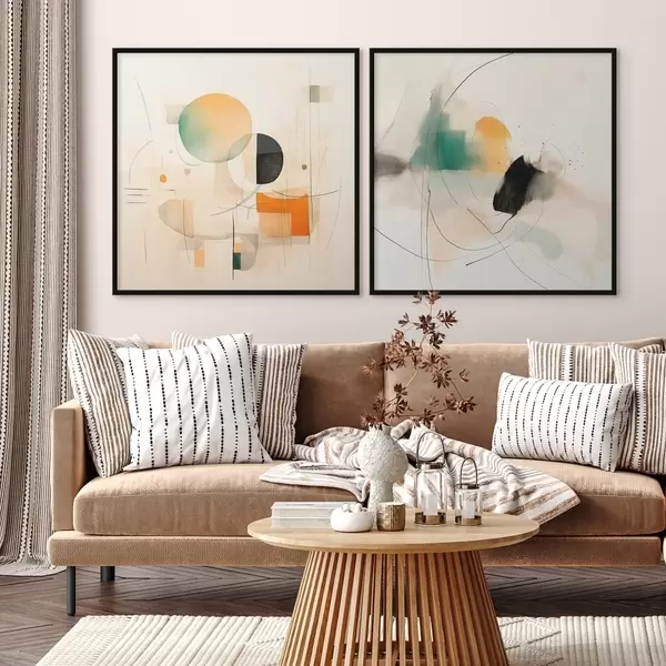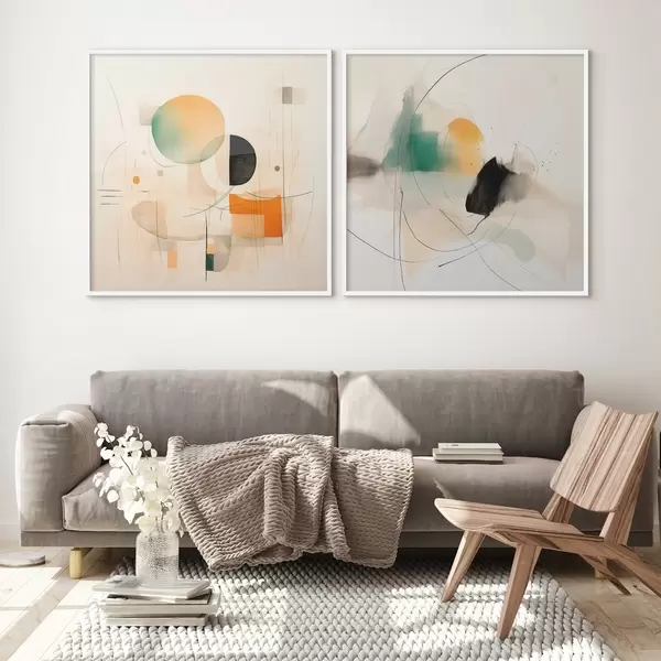 Poster Abstraktes Diptychon mit kreisförmigen Formen und dynamischen Linien Nr d00981