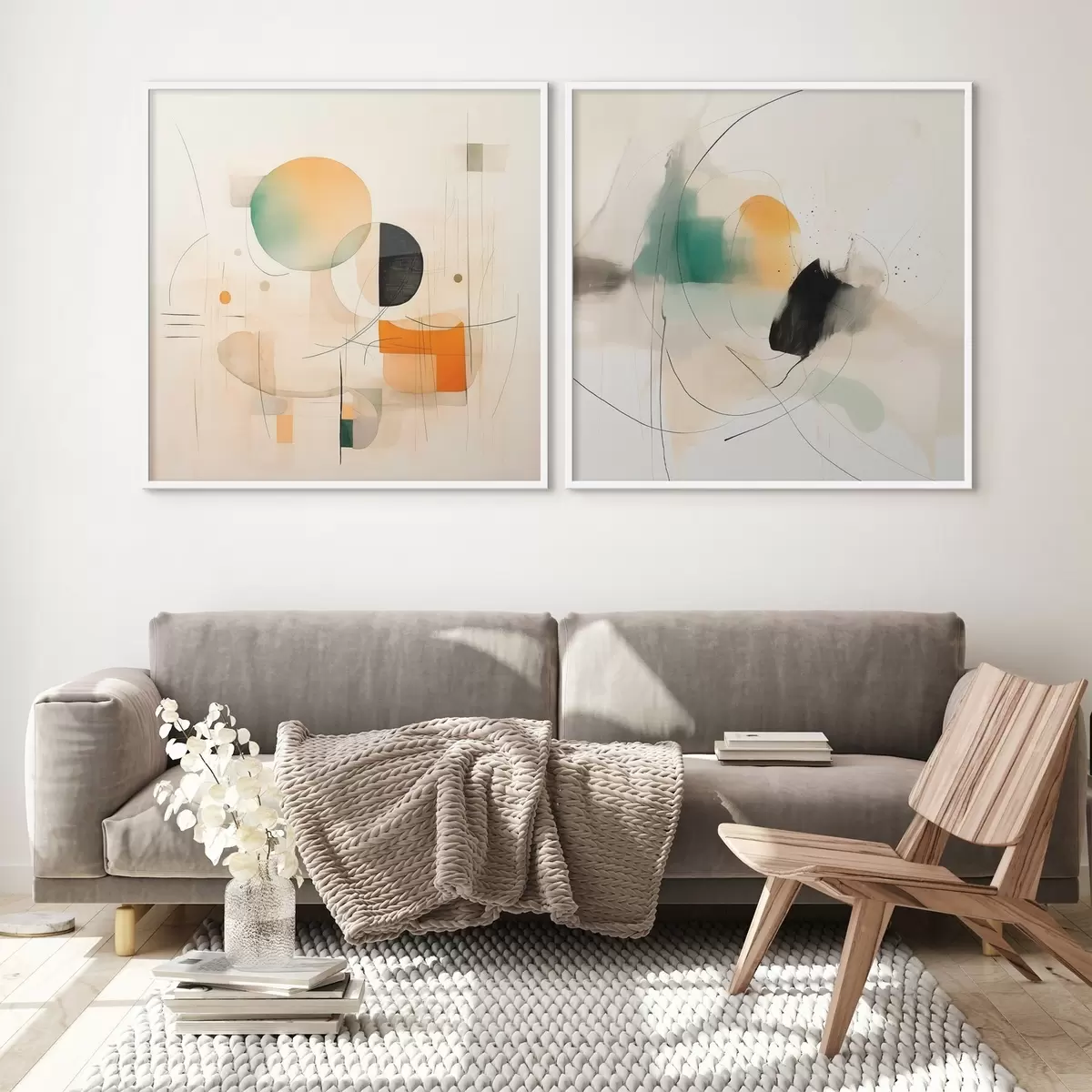Poster Abstraktes Diptychon mit kreisförmigen Formen und dynamischen Linien d00981