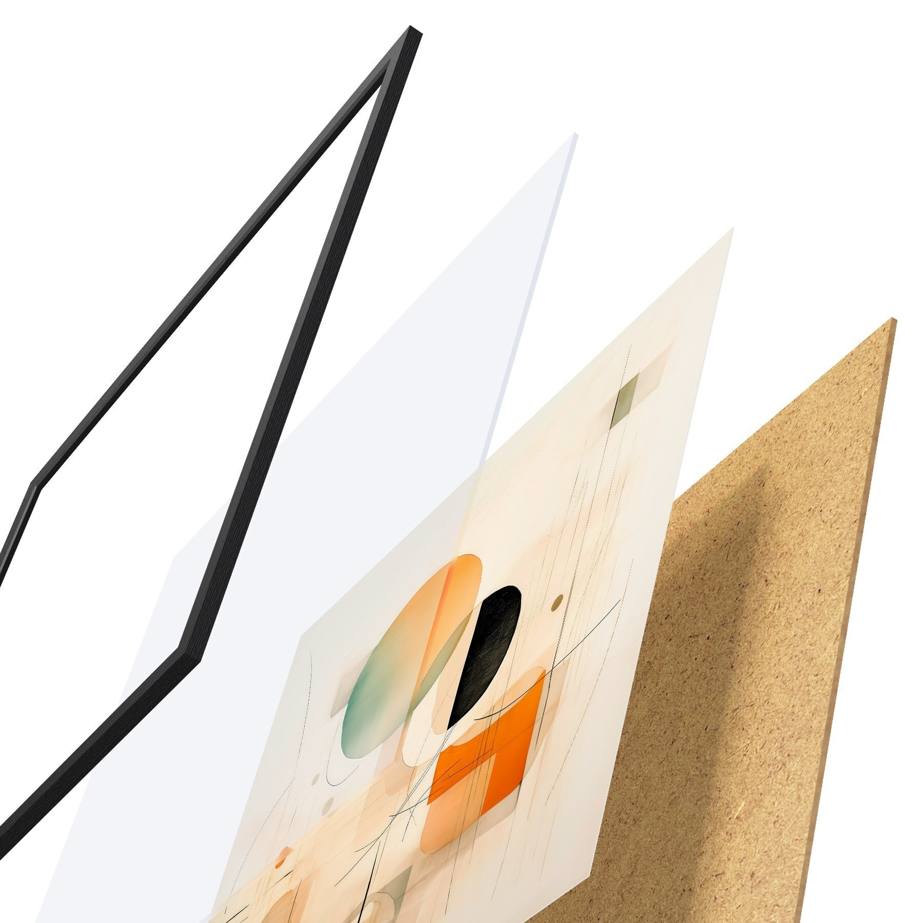 Das Poster besteht aus einem Rahmen, Plexiglas, einem gedruckten Bild und einer Rückwand aus Spanplatten. Dank der Halterungen auf der Rückseite kann das Poster sofort an die Wand gehängt werden.