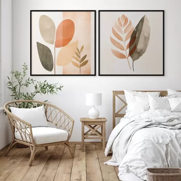 Poster Diptychon mit botanischen Motiven in Pastelltönen d00983