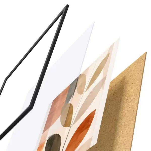 Das Poster besteht aus einem Rahmen, Plexiglas, einem gedruckten Bild und einer Rückwand aus Spanplatten. Dank der Halterungen auf der Rückseite kann das Poster sofort an die Wand gehängt werden.