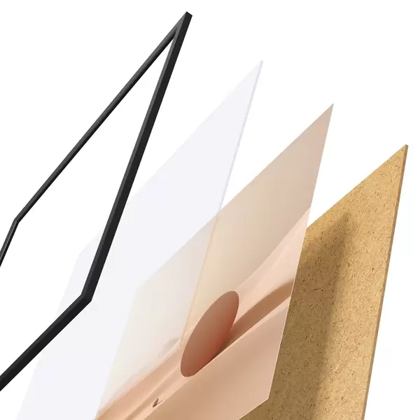 Das Poster besteht aus einem Rahmen, Plexiglas, einem gedruckten Bild und einer Rückwand aus Spanplatten. Dank der Halterungen auf der Rückseite kann das Poster sofort an die Wand gehängt werden.