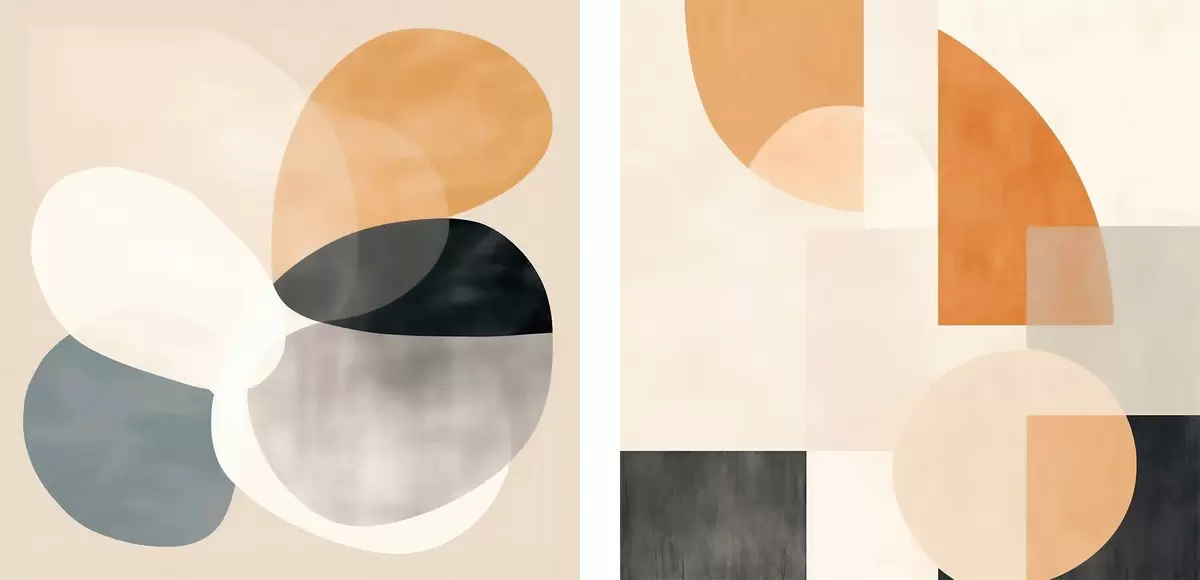 Poster Abgerundete Schnittpunkte von Formen im Aquarell-Minimalismus Nr d00993
