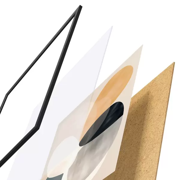 Das Poster besteht aus einem Rahmen, Plexiglas, einem gedruckten Bild und einer Rückwand aus Spanplatten. Dank der Halterungen auf der Rückseite kann das Poster sofort an die Wand gehängt werden.