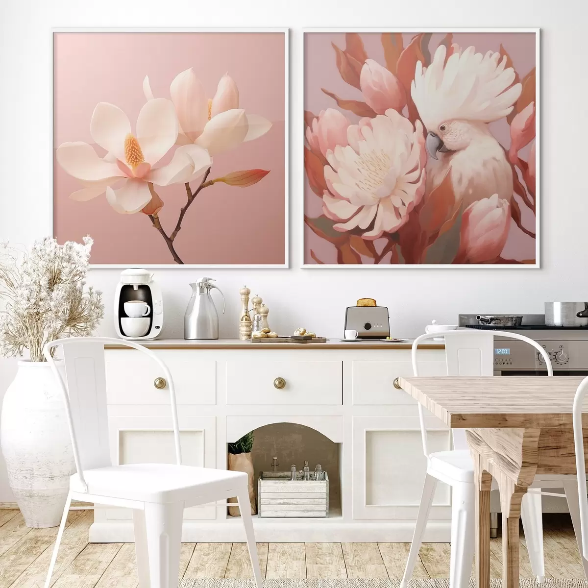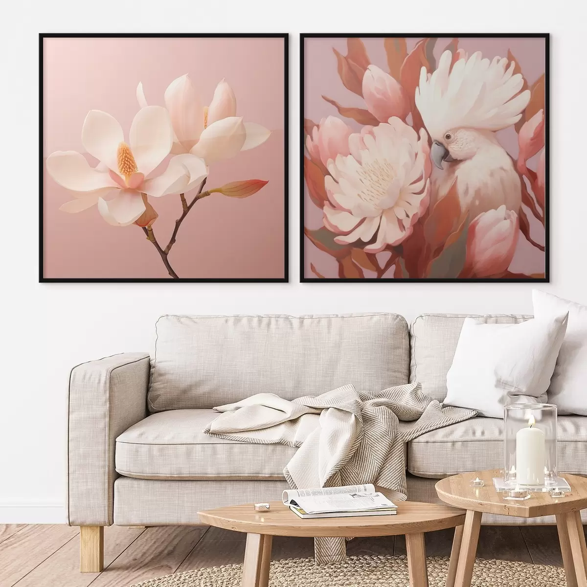 Poster Blumenarrangement mit einem Vogel in künstlerischem Illustrationsstil Nr d00994