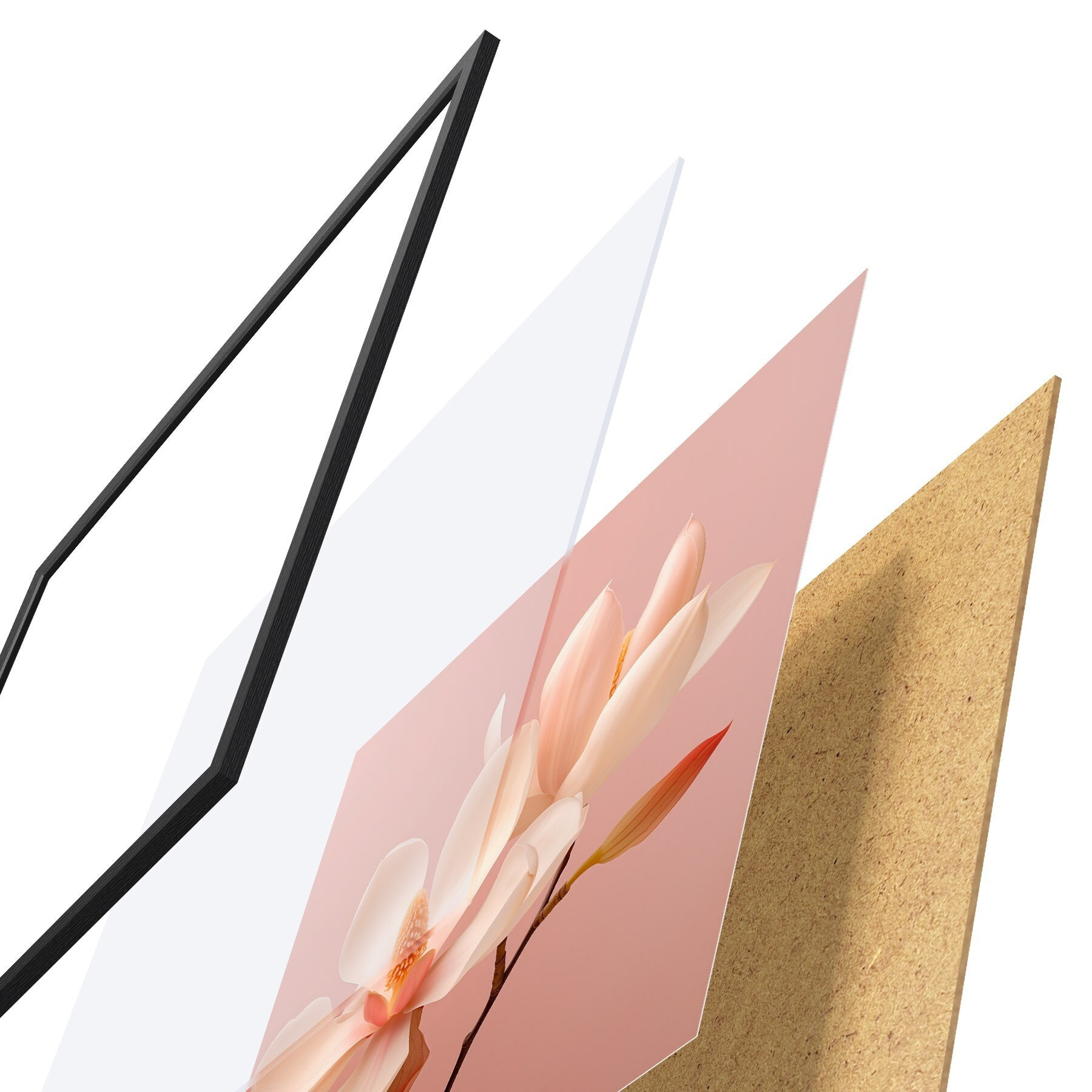 Das Poster besteht aus einem Rahmen, Plexiglas, einem gedruckten Bild und einer Rückwand aus Spanplatten. Dank der Halterungen auf der Rückseite kann das Poster sofort an die Wand gehängt werden.