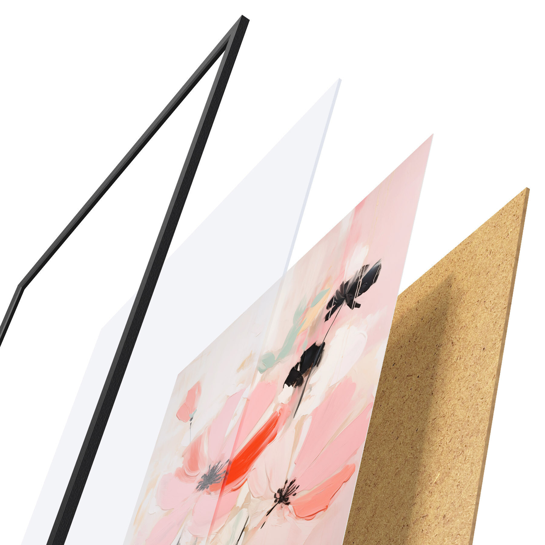 Poster Rosa und schwarze Blumen mit Blättern, sanfte Pastellfarben, abstraktes Blumenarrangement, minimalistische Kunst Nr d01004
