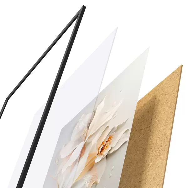 Das Poster besteht aus einem Rahmen, Plexiglas, einem gedruckten Bild und einer Rückwand aus Spanplatten. Dank der Halterungen auf der Rückseite kann das Poster sofort an die Wand gehängt werden.