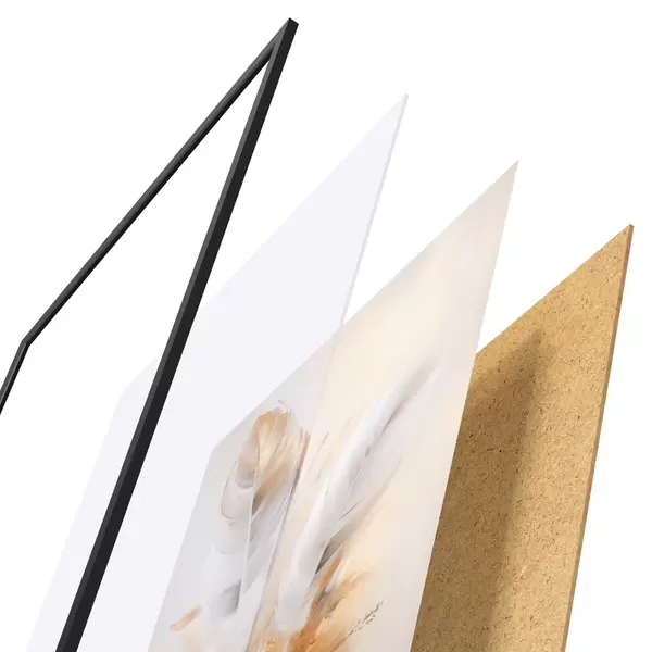 Das Poster besteht aus einem Rahmen, Plexiglas, einem gedruckten Bild und einer Rückwand aus Spanplatten. Dank der Halterungen auf der Rückseite kann das Poster sofort an die Wand gehängt werden.