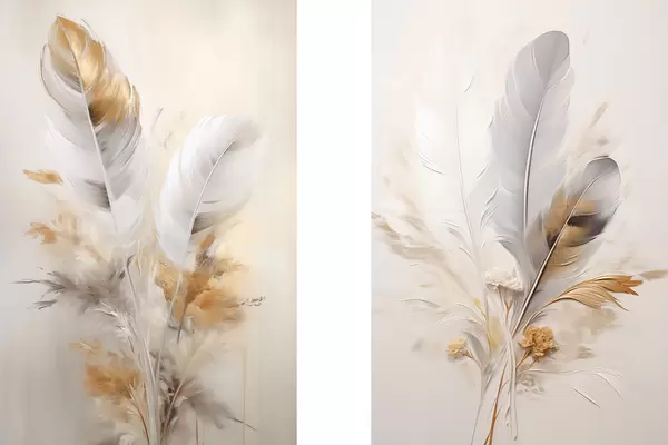 Poster Abstrakte Federn, umgeben von beigen und braunen Federn, weich und zart, auf hellbeigem Hintergrund Nr d01016
