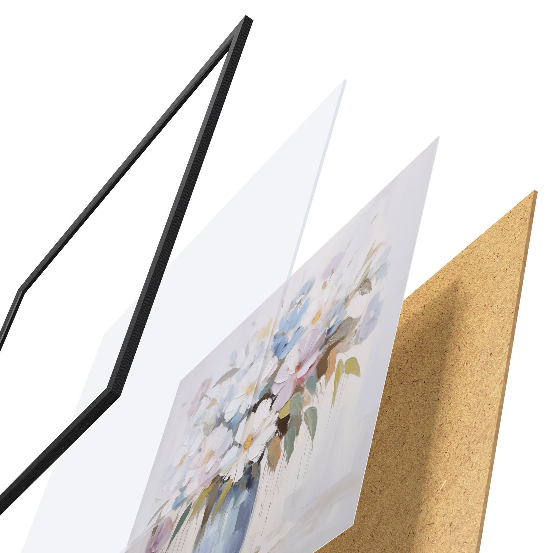 Das Poster besteht aus einem Rahmen, Plexiglas, einem gedruckten Bild und einer Rückwand aus Spanplatten. Dank der Halterungen auf der Rückseite kann das Poster sofort an die Wand gehängt werden.