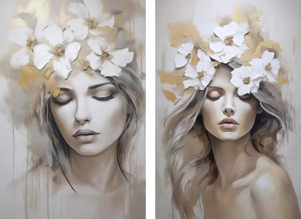 Poster Abstraktes Porträt eines Mädchens mit Blumen, Nachahmung eines Gemäldes Nr d01034