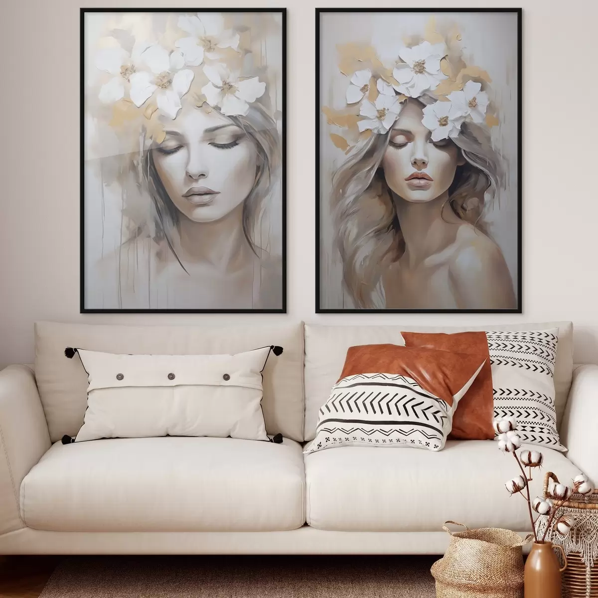 Poster Abstraktes Porträt eines Mädchens mit Blumen, Nachahmung eines Gemäldes d01034