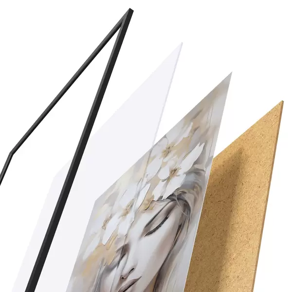 Das Poster besteht aus einem Rahmen, Plexiglas, einem gedruckten Bild und einer Rückwand aus Spanplatten. Dank der Halterungen auf der Rückseite kann das Poster sofort an die Wand gehängt werden.