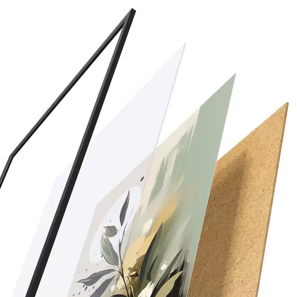Das Poster besteht aus einem Rahmen, Plexiglas, einem gedruckten Bild und einer Rückwand aus Spanplatten. Dank der Halterungen auf der Rückseite kann das Poster sofort an die Wand gehängt werden.